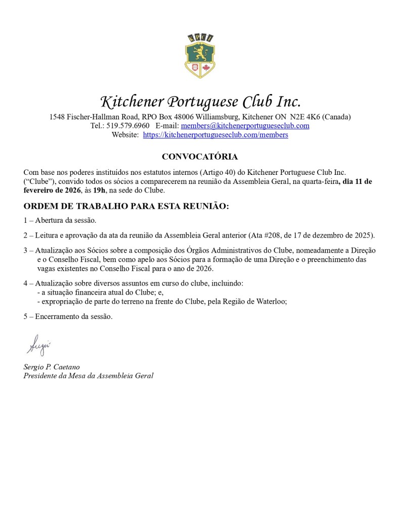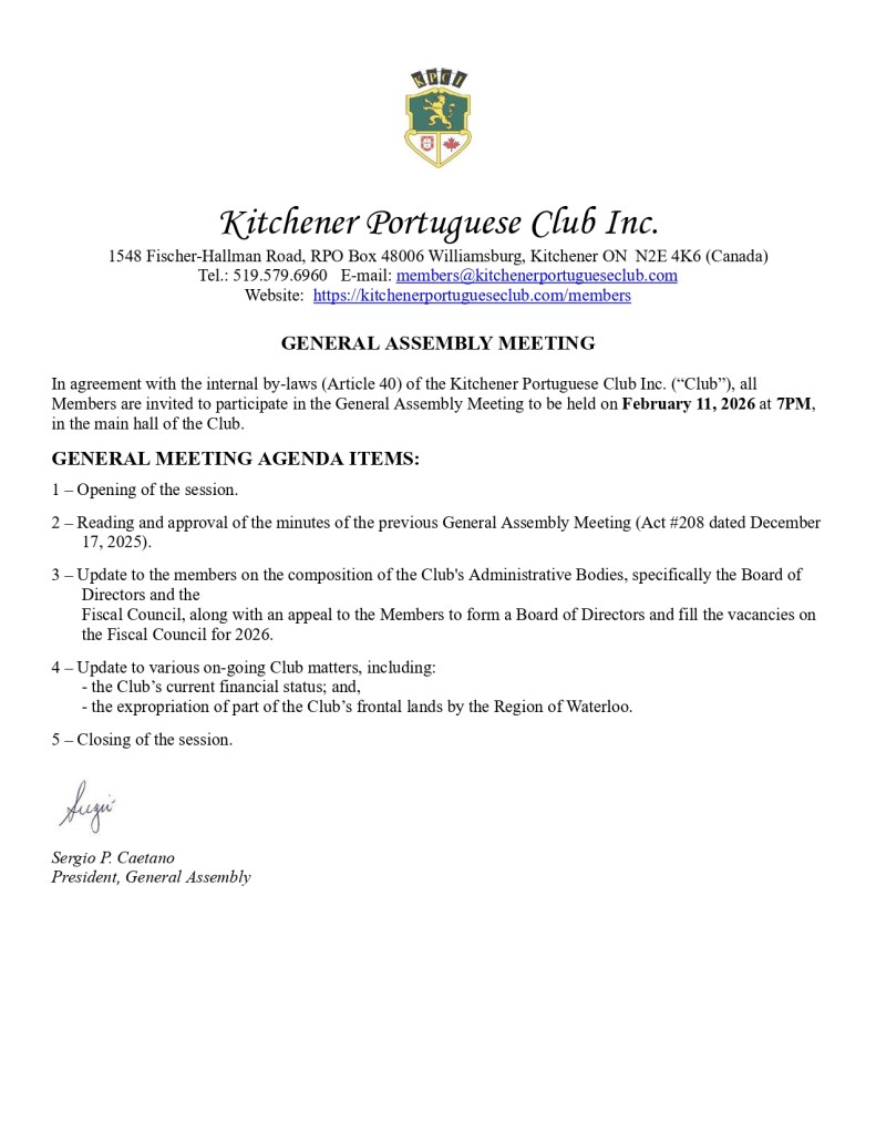 The Kitchener Portuguese Club, would love to see you all join us in our Social Bar, for our Friday dinner of the week, Feb. 6th.