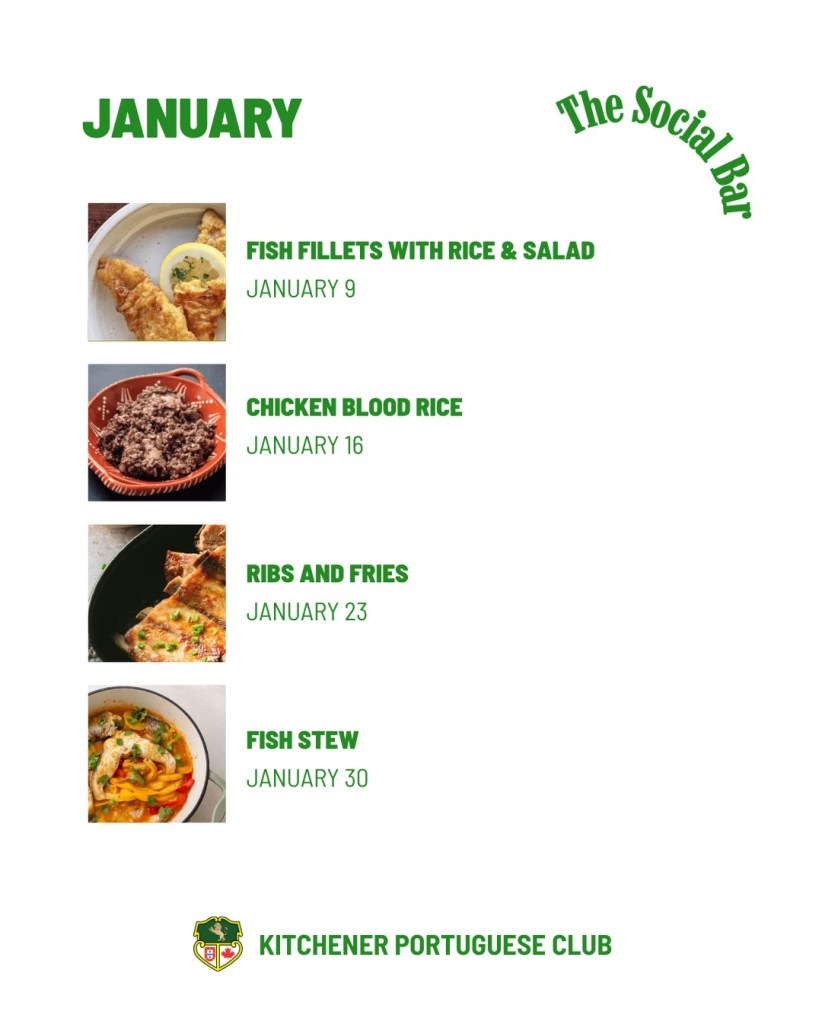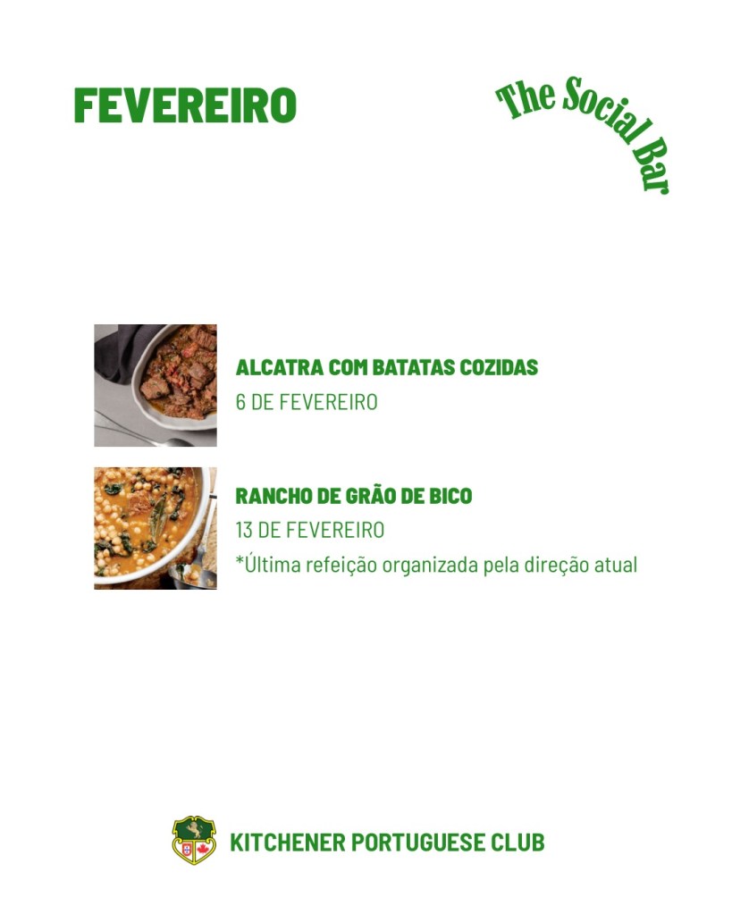 O Clube Portuguรชs de Kitchener gostaria de convidar todos para se juntarem a nรณs no nosso Social Bar, para o jantar de Sexta-Feira desta semana, dia 6 de Fevereiro.