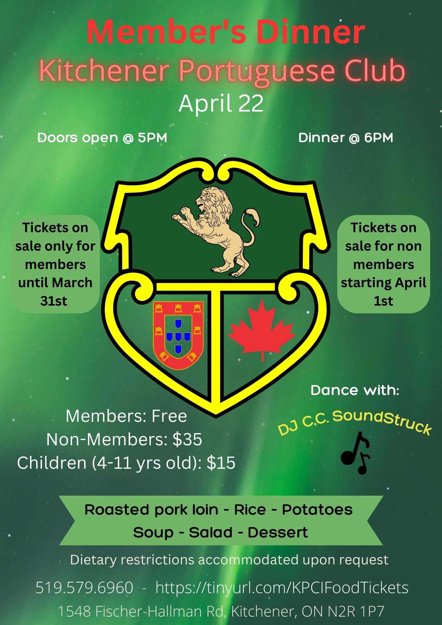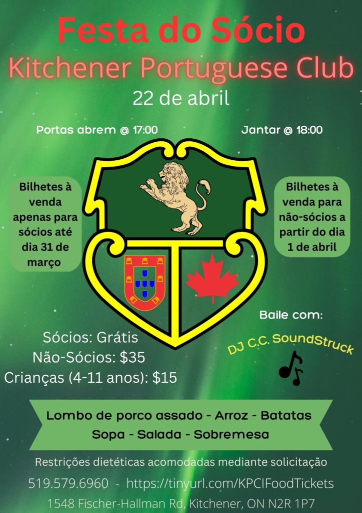 Festa do Sócio/Members Dinner & Dance – Sáb. 22 de Abril 2023 Posted by danny36ca on March 18, 2023 Posted in: Past News and Events. Para bilhetes, contacte o Clube: 519-579-6960 ou visite este link. For tickets, contact the Club: 519-579-6960 or visit this link. Share this: Click to share on X (Opens in new window) X Click to share on Facebook (Opens in new window) Facebook Click to email a link to a friend (Opens in new window) Email Like Loading... Posts navigation ← FRIDAY’S DINNER/JANTAR DE SEXTA-FEIRA – March/Março 24, 2023! Jantar e Baile do Dia da Mãe/Mother’s Day Dinner & Dance – Sáb. 13 de Maio 2023! →