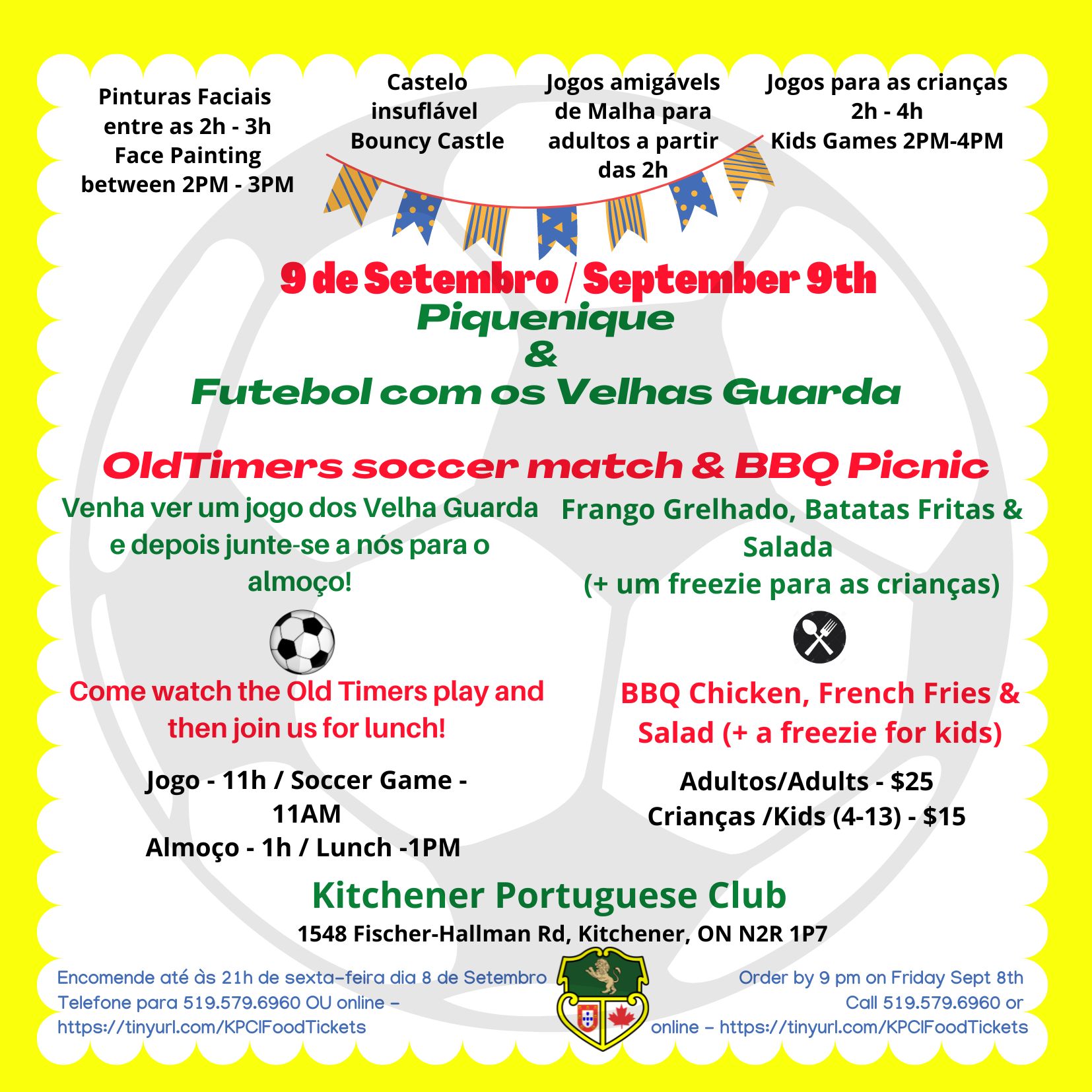 Clique aqui para reservar online ou ligue para o Clube: 519-579-6960.