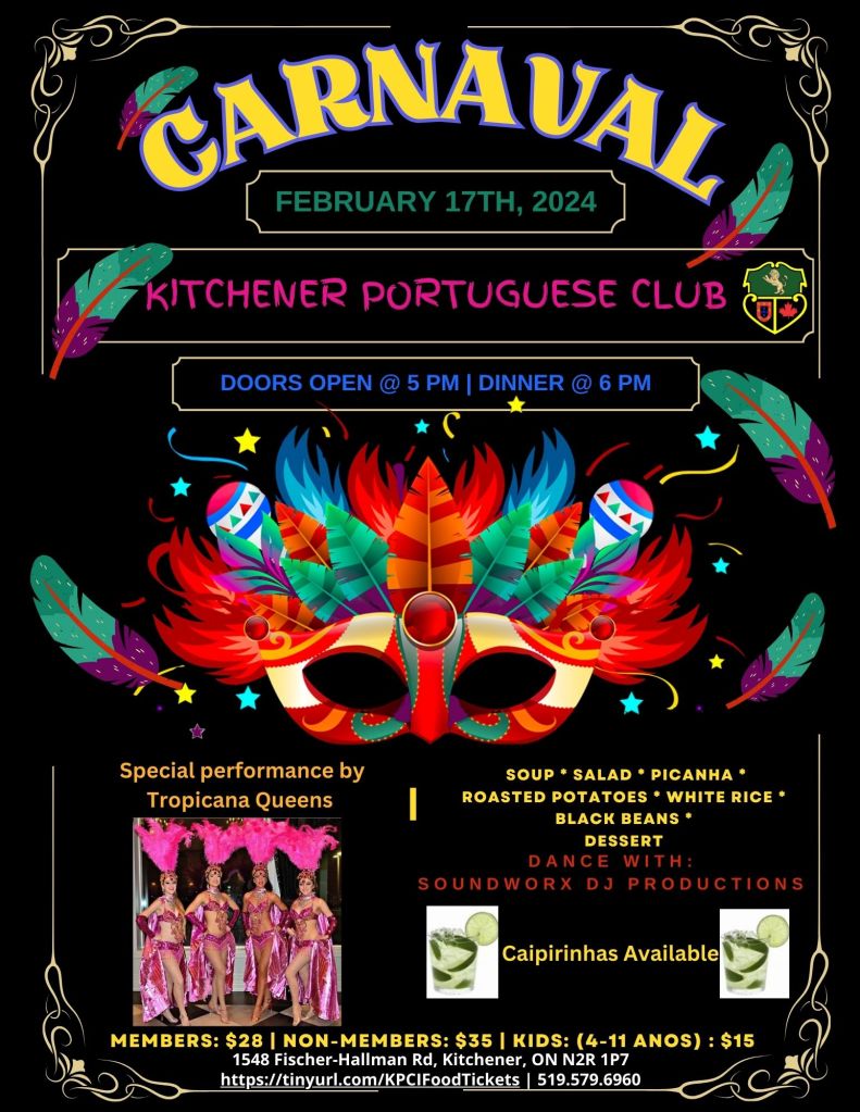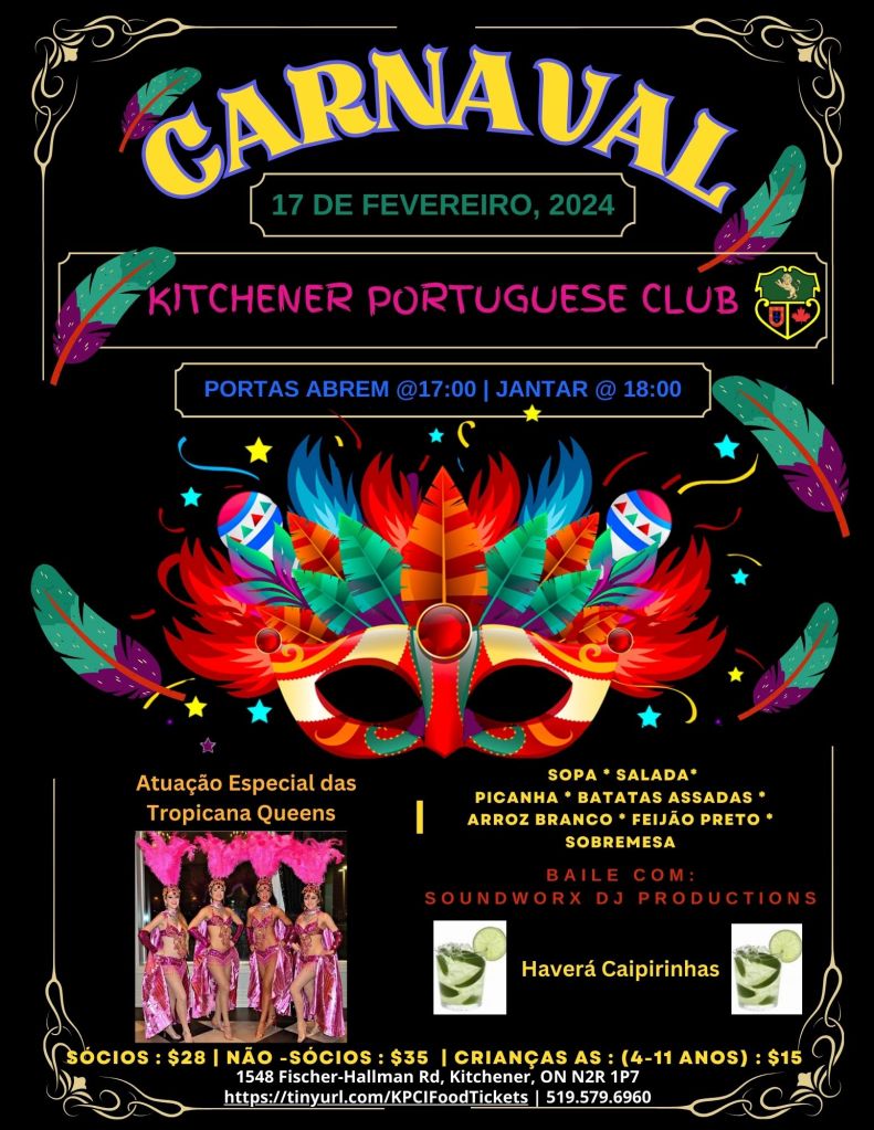 SOLD OUT/ ESGOTADO – – CARNAVAL – FEB./FEV. 17TH, 2024!! Posted by danny36ca on January 29, 2024 Posted in: Past News and Events. WE ARE SOLD OUT – ESGOTADO Share this: Click to share on X (Opens in new window) X Click to share on Facebook (Opens in new window) Facebook Click to email a link to a friend (Opens in new window) Email Like Loading... Posts navigation ← FRIDAY’S DINNER SPECIAL/JANTAR DE SEXTA-FEIRA – Jan. 19, 2024!! Festa dos Caçadores/Hunters Feast – Sáb./Sat. Mar. 16, 2024 →