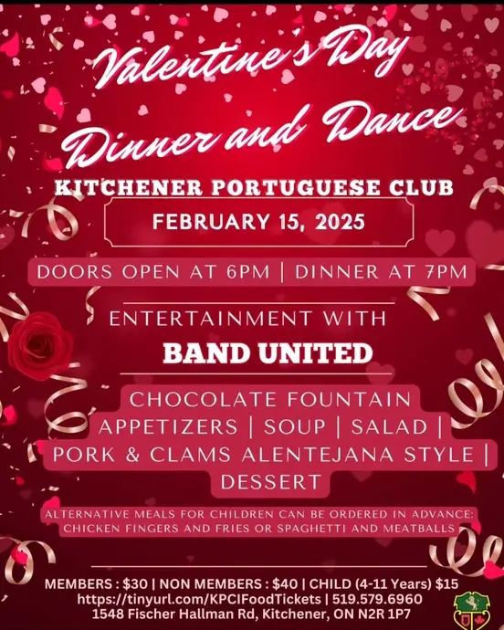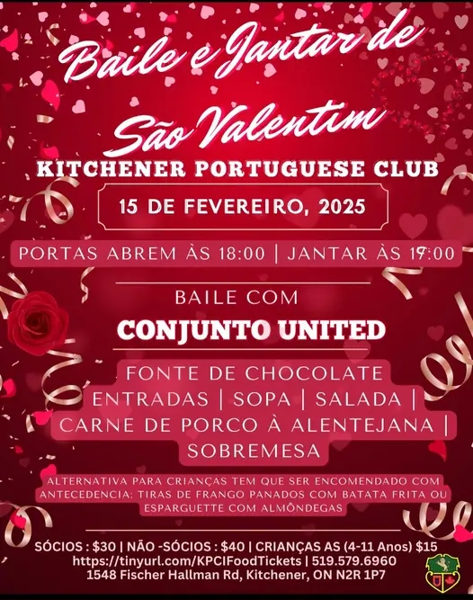 Junte-se a nós para a nossa festa romântica do São Valentim no dia 15 de Fevereiro.