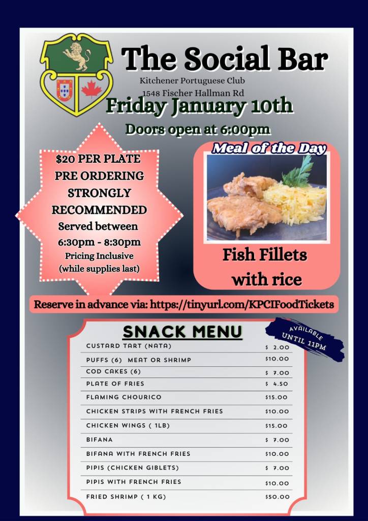 The Kitchener Portuguese Club, would like to see you all join us at our Social Bar for the First Friday dinner of this year, January 10th!