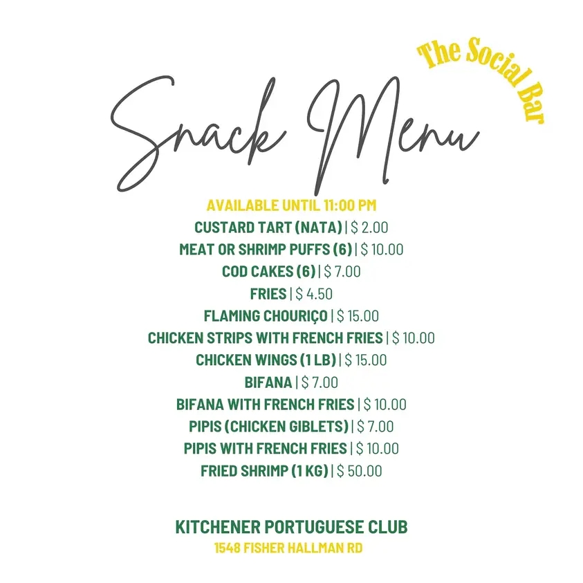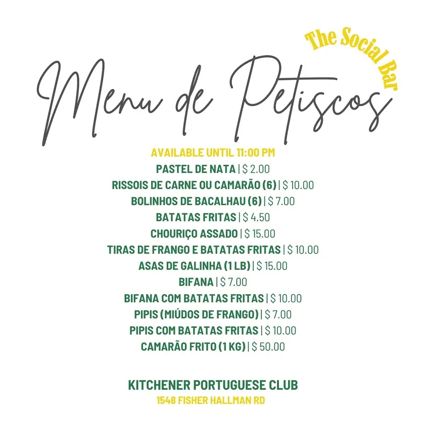 The Kitchener Portuguese Club, would like to see you all join us at our Social Bar for Friday dinner this week, January 24th!