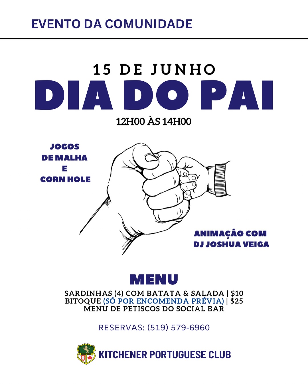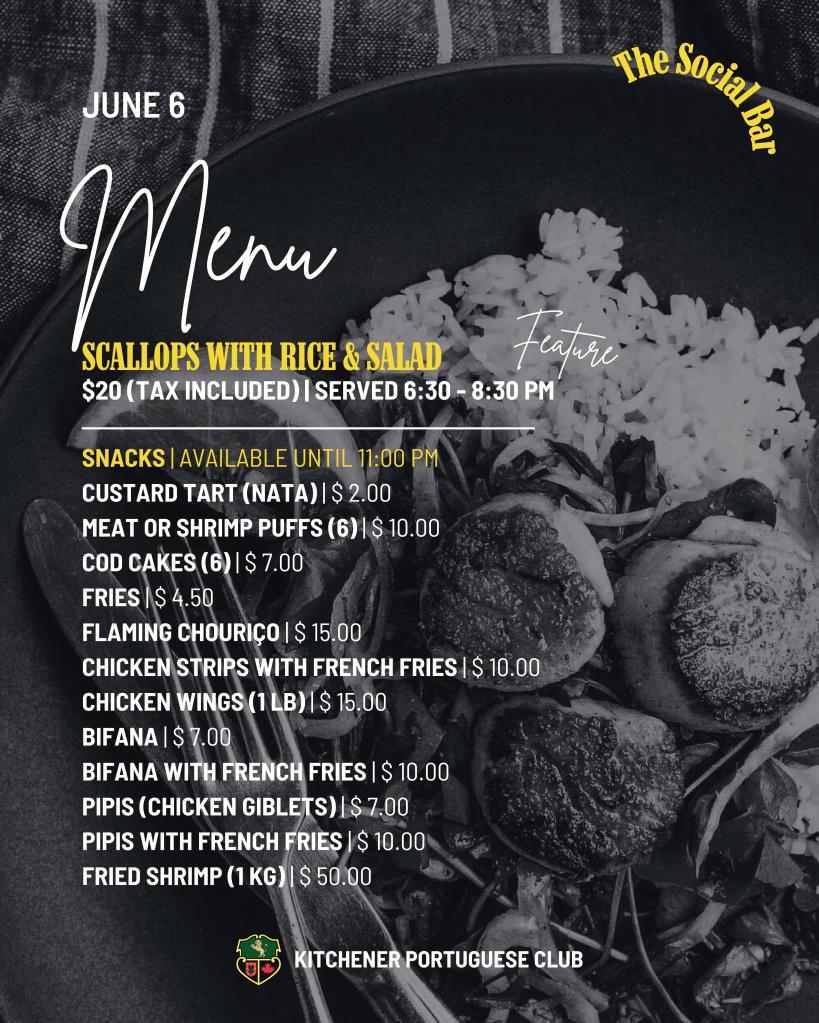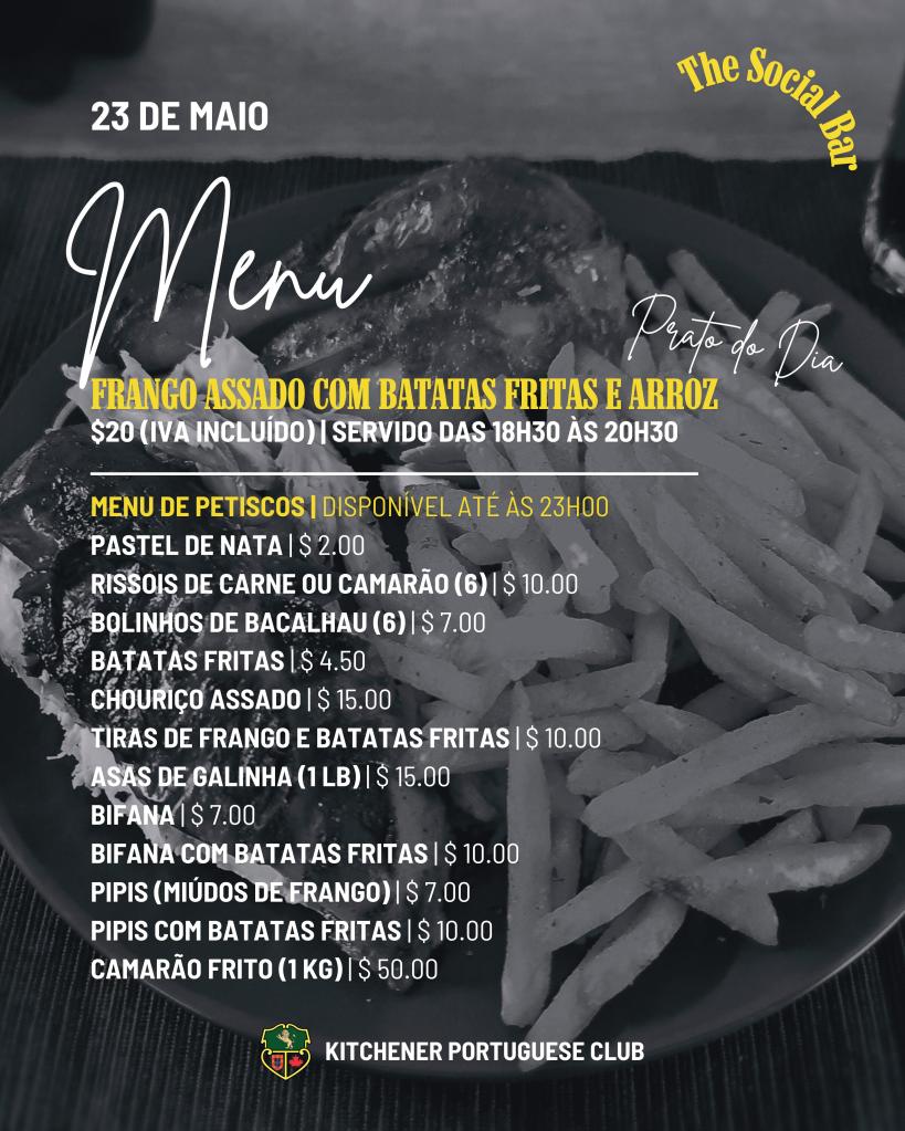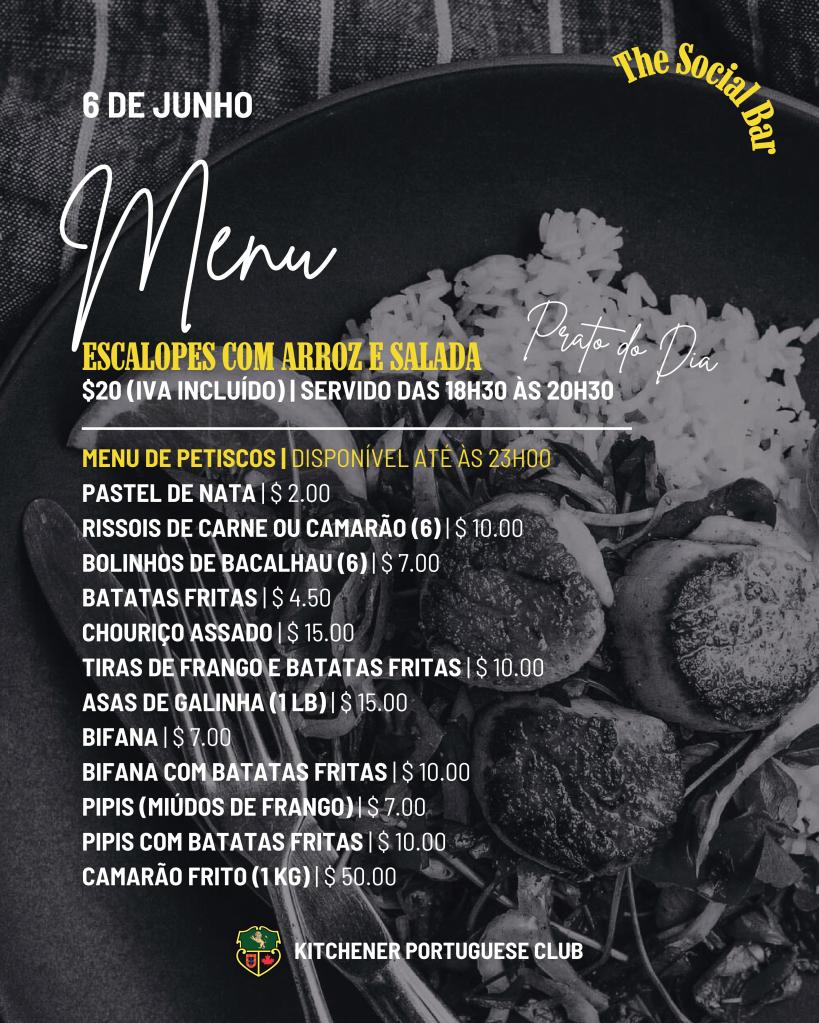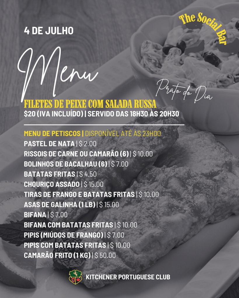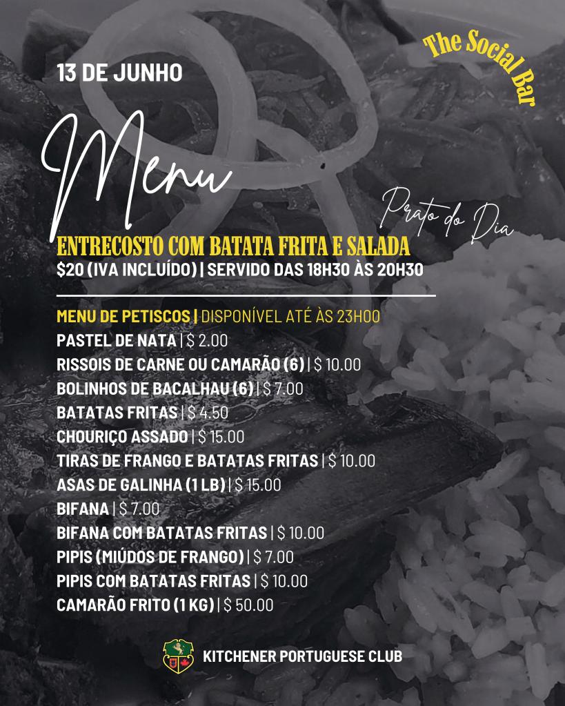 The Kitchener Portuguese Club, would like to see you all join us in our Social Bar, for Friday dinner this week, July 18th, 2025.