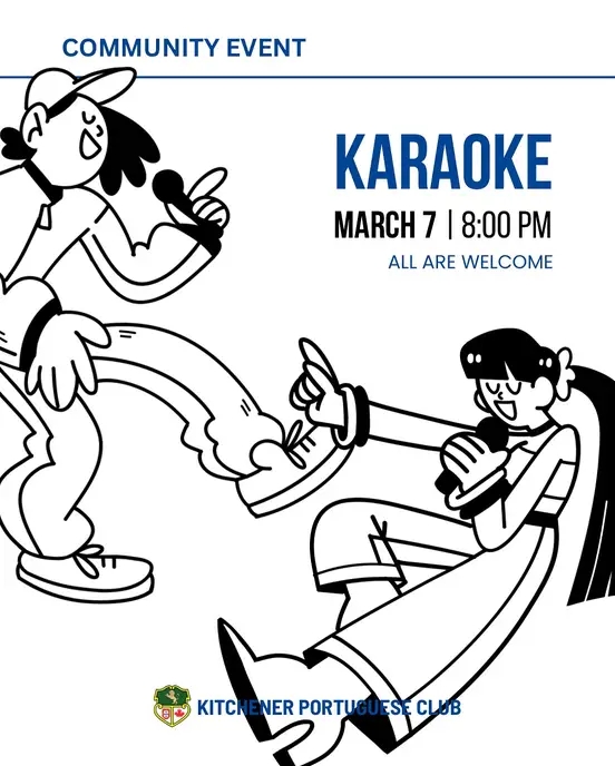 Junte-se a nós na sexta-feira, 4 de abril, no Kitchener Portuguese Club para uma noite cheia de música e boa disposição!