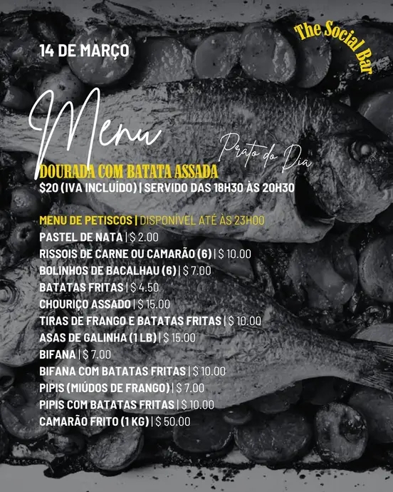 O karaoke começa às 20h00, e o nosso menu de petiscos e bebidas estará disponível durante toda a noite.