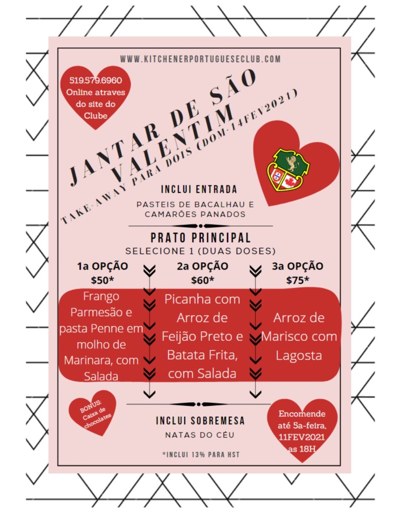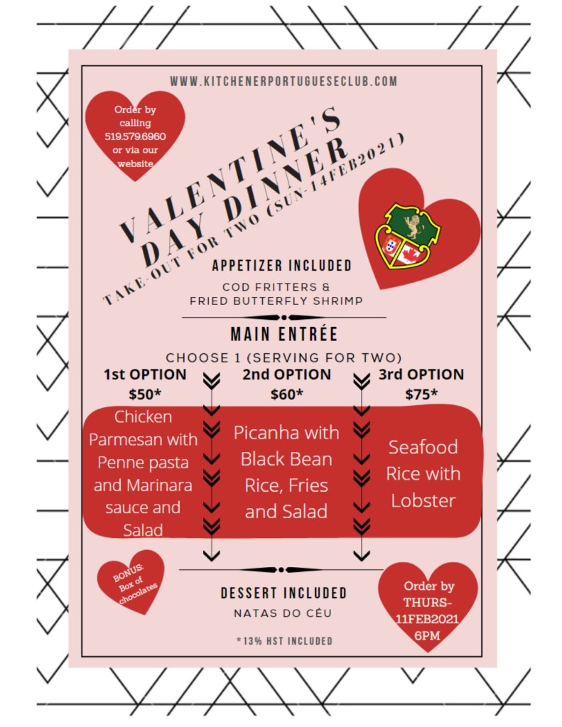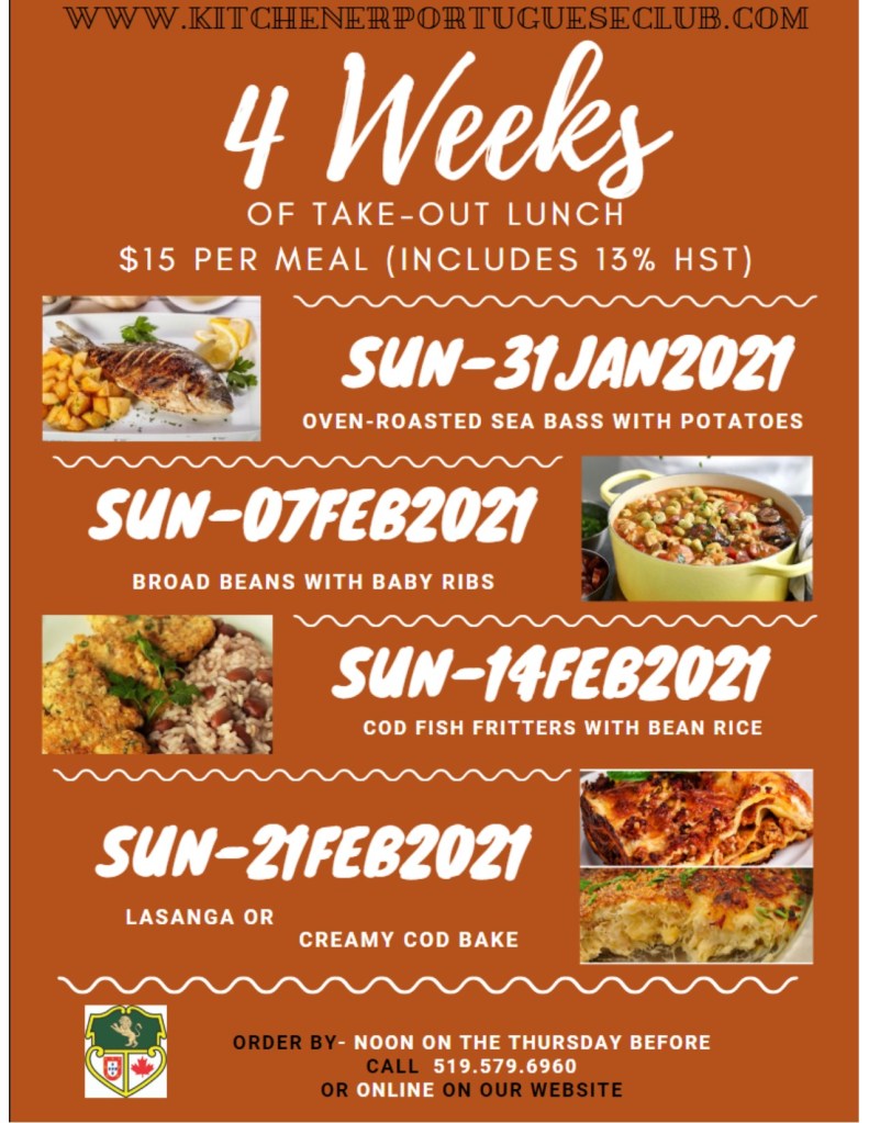 Due to COVID-19, we cannot socialize in person, however, you can still enjoy Portuguese inspired food from the Kitchener Portuguese Club.