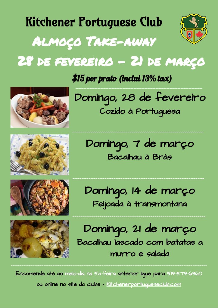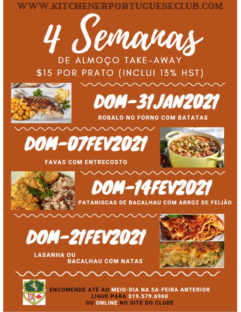 Devido ao COVID-19, não podemos socializar pessoalmente, no entanto, ainda pode desfrutar da comida Portuguesa do Kitchener Portuguese Club.