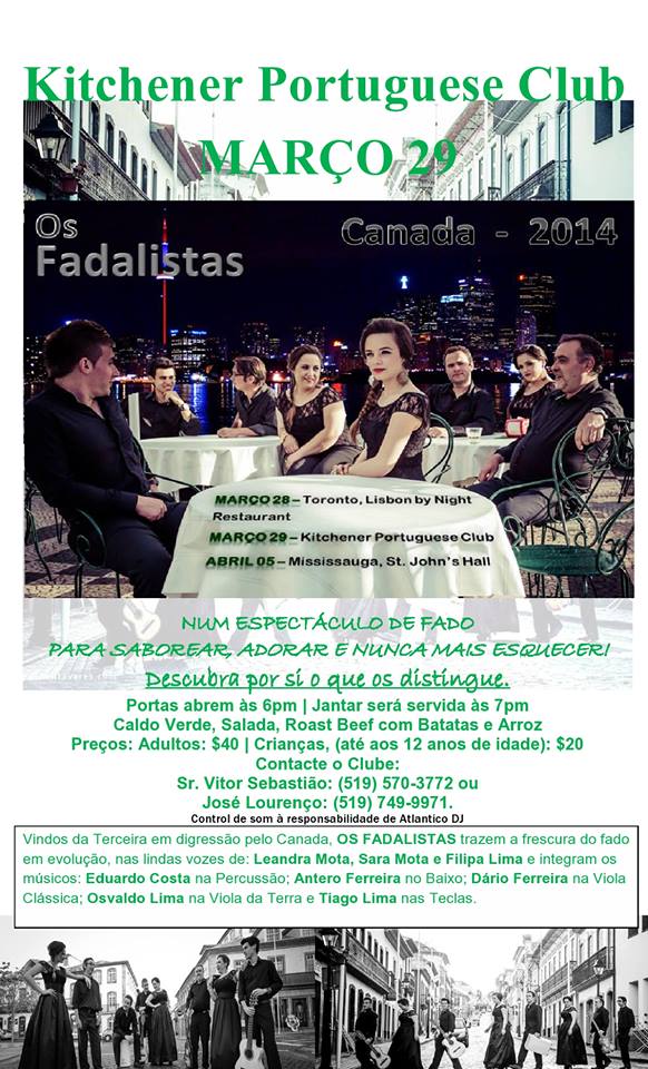 Para marcações, contacte: Jose Lourenco: (519) 749-9971 ou o Clube: (519) 579-6960.