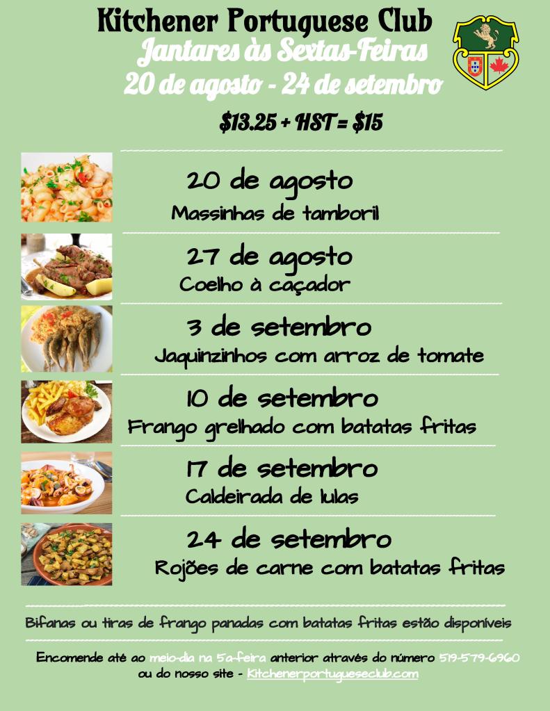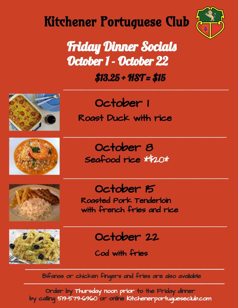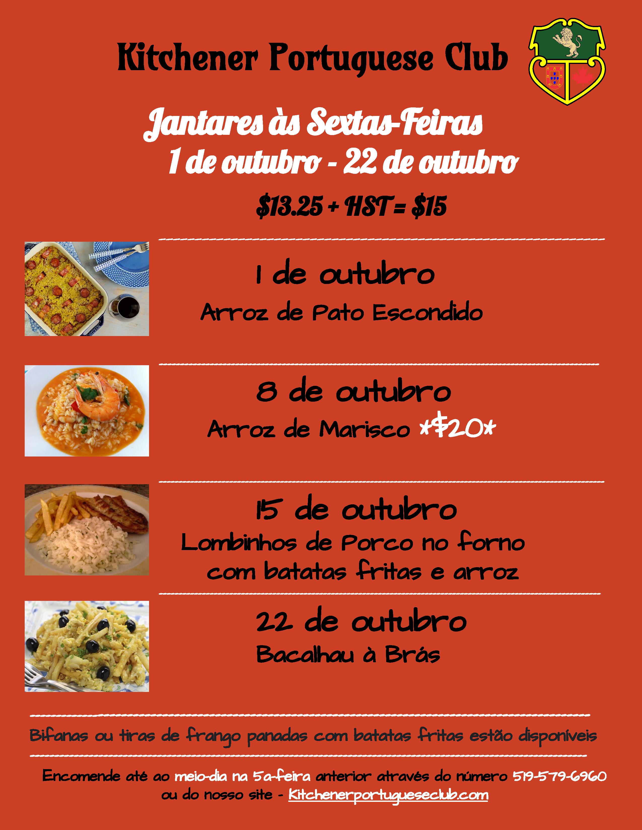 Haverá opção de take-away também. Faça a sua encomendas para esta sexta-feira até as 12H esta 4a-feira para 519-579-6960 ou online através deste link.